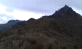 STRAIGHT up? I felt I was walking a treadmill at the incline of 25! We should have read the travel guide first as it warns not to make the hike if its your first day in Quito as you should allow yourself to acclimate. Oops! We made it about 2 1/2 hours up and thought it was in our best interest to turn around so we wouldn't get caught up in there the dark (the last bit we heard was even worse than what we had already experienced). It took us an hour to come down. We ran into rain on the way up... until, that is, we got above the clouds. We also walked through the clouds on our decent and yes, more rain after we broke through them. What an experience though. Yes, for a moment (or many) I wasn't sure if make it, but it was amazing. To get back to the bottom look up to where we were was astounding